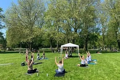 Door een van onze mobiele zenders te huren kan er overal, bijvoorbeeld midden in een openbaar park, een silent yoga worden opgezet. De instructrice/instructeur kan door middel van de microfoon de deelnemers toespreken en iedereen zit in zijn/haar wereld zonder storende omgevingsgeluiden.